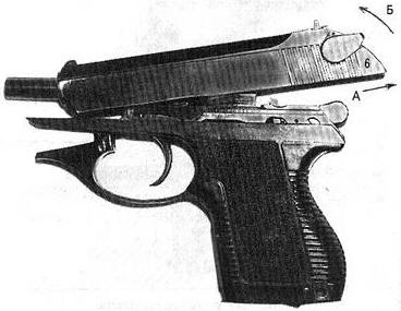 Отвести затвор назад (по направлению А) приподнять и снять движением вперед (по направлению Б)