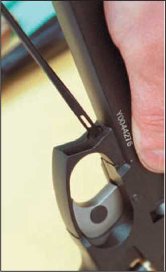 При хорошей кучности стрельбы поставьте метку на корпусе Перед удалением баллончика обязательно стравите газ при помощи шомпола или отвёртки Если клапанное устройство застряло в корпусе, необходимо снять прицельную колодку и выбить устройство сверху
