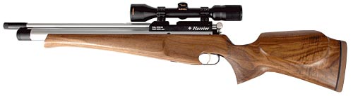 Надежность: 5 (так как PCP использует сжатый воздух из резервуара, конструкция винтовки предельно проста и практически не имеет подвижных деталей, кроме "болта" зарядки и системы муфт, которые регулируют мощность). Мощность: 5 (по мощности ничем не уступает пружинно-поршневой системе, и, как я уже говорил, система муфт эффективно изменяет рабочее давление ружья, таким образом, энергию можно изменять от 12 до 20 ft/lbs). Долговечность: 5 (баллон со сжатым воздухом может заряжаться сколько угодно, а ствол фирмы Walther прослужит вам не один год, но если вы любите все новое, то компания Daystate отдельно продает стволы любых калибров для всех своих моделей, заменить старый ствол очень просто и удобно, потрясающе!!!). Точность: 5 (много людей говорят о точности PCP пневматики как о чем-то фантастическом и невообразимом, некоторые просто не верят, но это действительно так, PCP обладает самым точным боем среди пневматики. По словам независимого эксперта и профессионала, имеющего коллекцию из 38 винтовок, Кевина Гилберта, на расстоянии 50 ярдов (46 метров) Daystate Harrier способен на протяжении 30 выстрелов попадать в одну и ту же точку пулями Crosman Accupell и Dynamic PCP2). Пригодность для охоты: 5 (для охоты, конечно, дороговато, но если у вас есть средства, желание на 46-ти метрах попадать вороне в глаз, иметь идеальную пневматическую винтовку и получать от охоты максимум удовольствия, PCP пневматика для вас). Всего: 30 баллов.