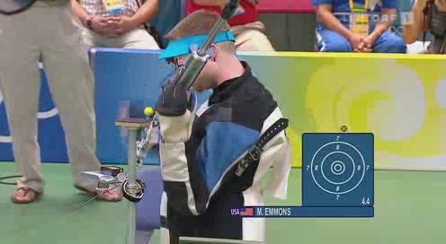 В Пекин супруги Эммонсы приехали вместе и жили здесь в одном домике, хотя Катерина демонстративно передвигалась по Олимпийской деревне и стрельбищу в кофточке цветов национального триколора и буквами CZE на спине. Она победила все в том же ВП-4, и ее страстный поцелуй с бросившимся с верхотуры к жене Мэттом обошел первые страницы всех газет мира и твердо закрепился в качестве флэш-заставки официального сайта Пекина-2008. Их медальная копилка стала пополняться в среднем раз в четыре дня. Катерина добавила к своему золоту серебро в упражнении «стандарт 3х20», а Мэтт выиграл серебро в «лежке», уступив лишь феноменальному Артуру Айвазяну. Его главный старт - тот самый, на котором он, в прямом смысле этих слов, осекся в Афинах, ожидал Эммонса через два дня... На заключительной перед стартом пресс-конференции Эммонс нежно смотрел на сидевшую в первом ряду Катерину и говорил, что его самый точный прицел - их с Катериной любовь. Как ни странно, в его устах даже такие высокопарные фразы были лишены комсомольского пафоса. Мэтт и Кэти всегда глядят друг на друга так, будто продолжают произносить клятву молодоженов у алтаря. Один из заокеанских журналистов не постеснялся напомнить Эммонсу об инциденте четырехлетней давности: слово crossfire - так на языке Шекспира и Байрона обзывают стрельбу по чужим мишеням - было произнесено несколько раз, акцентировано и увесисто, но Мэтт все улыбался: «Я надеюсь, меня запомнят не только по этой причине», - заметил он на прощание. ... А уже через два дня в «Саге об Эммонсах» была написана новая душераздирающая глава. Мэтт фантастически провел квалификацию в малокалиберном стандарте 3х40 выстрелов, без устали выбивая «десятки» лежа, стоя и с колена. К финальному раунду он подошел с великолепным результатом, уступая лишь вечному рекордсмену в этой дисциплине - словенцу Раймону Дебевецу, да и то лишь один балл. После того, как трясшийся словно в лихорадке Дебевец выбил две «семерки» первыми тремя выстрелами, перед американским снайпером зажегся зеленый свет к долгожданному золоту. Он стрелял, как не знающая сбоев машина с лазерной самонаводкой, и перед последним выстрелом опережал ближайшего преследователя - украинца, нашего - Юрия Сухорукова - на три с половиной очка. Отгремели выстрелы семерых других участников финала... Стало известно, в частности, что Сухоруков проиграл одну десятую балла снайперу из Китая. И тогда свою винтовку поднял одной ногой олимпийский чемпион Пекина-2008 Мэттью Эммонс...