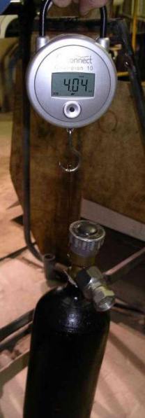 Взвешиваем баллон и по разнице данных определяем сколько газа залили. В данном случае получилось 950 гр. Снимаем переходник на шланг. На этом все. Замена 40 литрового баллона-донора обходится всего в 350 руб. В нем газа киллограм 19-20. Даже если заливать по 1 кг. заправка обходится в 17 руб. 50 коп. (напоминаю, что ранее мне это обошлось в 400 руб.). Ну а вообще дело не в экономии, просто очень удобно - когда надо тогда и заправил. Второй способ задуть баллон углекислым газом