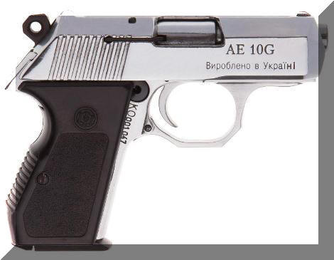 Пистолет производства "Шмайсера" – "АЕ 10G" под резиновую пулю, и газовый пистолет ПГШ 10 Миниатюрный травматический пистолет «Шмайсер АЕ10G» создан с нуля конструкторами совместного украино-германского предприятия «ШМАЙСЕР». Над новым детищем сотрудники СП «Шмайсер» работали более года. В разработке пистолета принял участие конструктор боевого стрелкового оружия Виктор Леонидович Шевченко и конструктор Валерий Яковлевич Кузьмин.