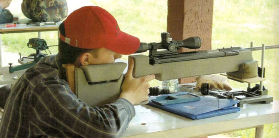 1. Положение за столом. BR-50 лучше всего стрелять за специальным БР-столом с вырезом, ХОТЯ можно использовать и обычный прочный стол. Постарайтесь занять максимально устойчивую позицию. Ноги прочно стоят на земле, а не скрещены под стулом. Оба локтя на столе. Посторайтесь «распластаться» на столе, максимально увеличив контакт предплечий со столом. Левая рука (если вы правша) поддерживает и управляет положением мешка под прикладом. Неправильно стрелять с высоких упоров и сошек, держа предплечья почти вертикально. Неправильно не использовать задний мешок. Высоких результатов в этих случаях ожидать не следует. Затратьте пару минут для правильной посадки: займите устойчивое наложение и прицельтесь в центр «сотенной» зоны. Закройте глаза и считайте до 10. Откройте глаза. Если прицельная марка сместилась от центра, вы сидите неправильно и отрывы неминуемы. Перенос огня из левой в правую часть листа BR-50 и наоборот, делайте с поворотом платформы переднего упора. То есть, ослабьте фиксацию передней стойки и поверните платформу на требуемый угол, либо чуть поверните сам упор, если конструкция не позволяет повернуть платформу из-за особенностей фиксации. 2. Дайте жить винтовке Не зажимайте винтовку. Держите её за шейку ложи, как шину, как творят «чтобы не задушить и чтобы не улетела». Всегда кладите винтовку на передний упор одним и тем же местом цевья винтовки. Найдите это место и отметьте его. Винтовка, особенно мощная, но не оборудованная механизмом компенсации, имеет отдачу за счёт реактивной струи вылетающего воздуха, а у каждой винтовки есть свой центр вращения. Важно найти точку на цевье, когда кучность будет максимально стабильной при переносе огня с мишени верхнего ряда на мишень нижнего ряда (BR-50). Не обязательно это будет то место, при котором передняя часть цевья упрётся в ограничитель переднею упора. Следите только, чтобы перед каждым новым выстрелом винтовка была на прежнем месте на упоре. Комментарий Алексея Петрова. Идеально такое положение, когда вы касаетесь только спускового крючка. Упоры должны быть отрегулированы так, чтобы прицельная марка направлена на то место, куда вы хотите попасть. Попробуйте посмотреть в прицел как в окуляр микроскопа. Это очень трудно при стрельбе BR-50, но для этого нужно поработать с упорами. З. Не спешите и не суетитесь. Времени 30 мин достаточно много, что произнести все зачетные и массу пристрелочных выстрелов, если необходимо. По практике, в благоприятных погодных условиях (штиль, предсказуемый ветер без резких порывов), стрелки заканчивают стрелять за 15-20 минут. Остальное время предназначено о основном для сложной погоды и непредсказуемого ветра. Комментарий Алексея Петрова. Не стесняйтесь как можно больше стрелять в тире. Для того, чтобы хорошо стрелять в ветер, нужно, чтобы остальные проблемы вас не беспокоили. В заключение хочется сказать, что данный вид спорта очень демократичен, поэтому, вполне возможно, что какой-либо стрелок найдет какую-то свою технику стрельбы и особенности настройки винтовки. Раз в два месяца обычно проводятся различные соревнования. Подавляющая часть соревнований проводится под эгидой клубов, входящих и РФФТ (Российская Федерация Филд-Таргета). Приезжайте на соревнования, хотя бы в качестве зрителя. Если вы поклонник высокоточной стрельбы свою порцию удовольст