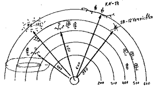 I этап пристрелки - после "грубой" привязки оружия к цели винтовка пристреливается по черному пристрелочному квадрату размером 25х35 см открытым прицелом "3" таким образом, чтобы средняя точка попадания была выше точки прицеливания на 14 см - для винтовки СВД и на 17 см - для трехлинейной винтовки (см таблицу превышения средних траекторий и схему 96). Оружие, пристрелянное таким образом с прицелом "I" на дистанции 100 метров, будет попадать строго по центру в точку прицеливания, а на дистанции 300 метров с прицелом "3" будет также попадать строго в точку прицеливания "по центру".